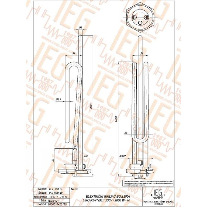Brtva grijača bojlera GORENJE 5/10 lit - nt.
