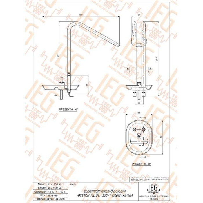 Grijač bojlera ARISTON 10 lit. NM 1,2 kW - krom