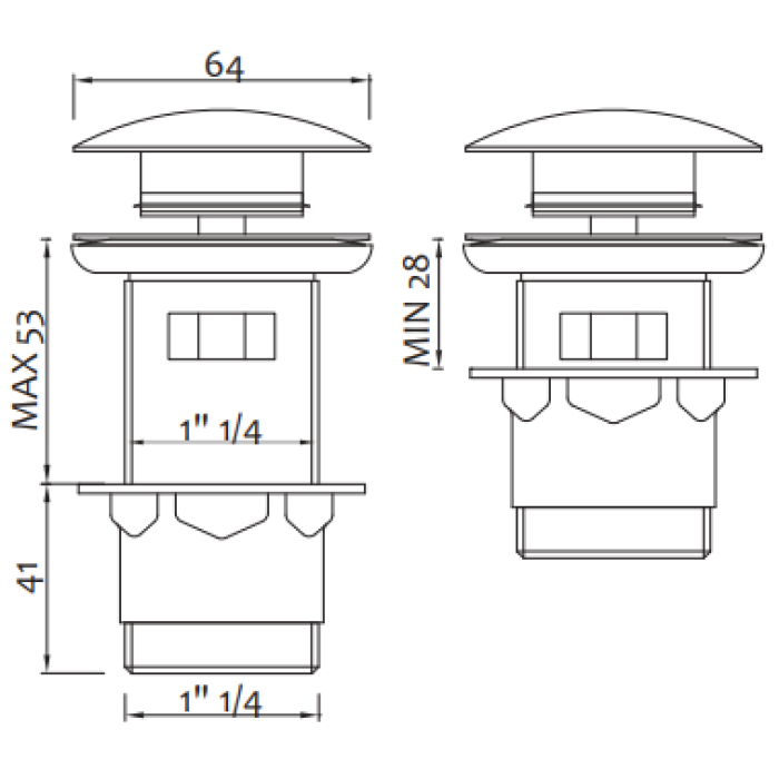 Pileta 5/4" x ø64 mm - click-clack