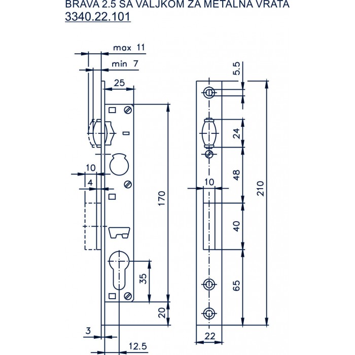 Prednja ploča 210 x 22 mm, mehanizam 170 mm