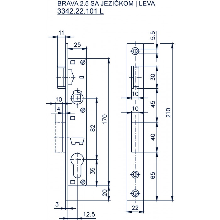 Prednja ploča 210 x 22 mm, mehanizam 170 mm