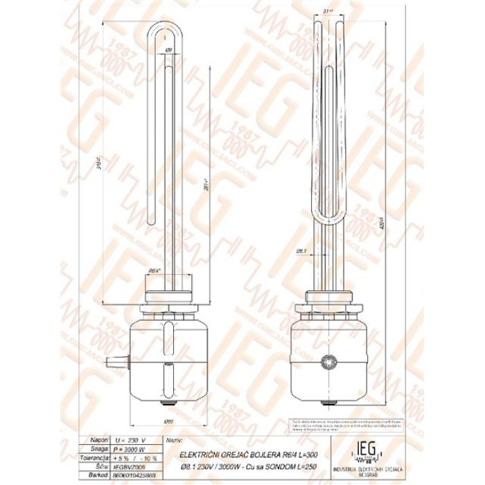 Grijač 6/4", 3 kW, 230 V - sa un. regulacijom
