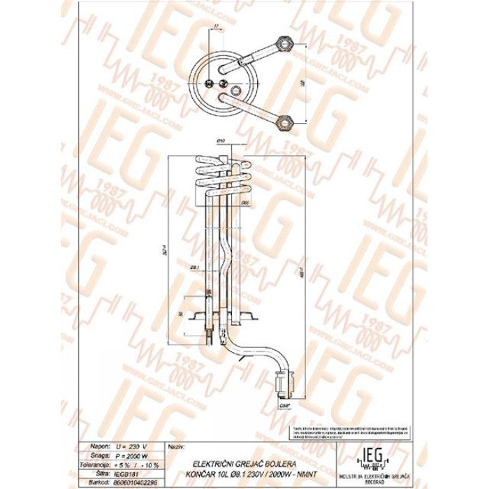 Grijač bojlera KONČAR 10 lit. NM 2,0 kW - nt.