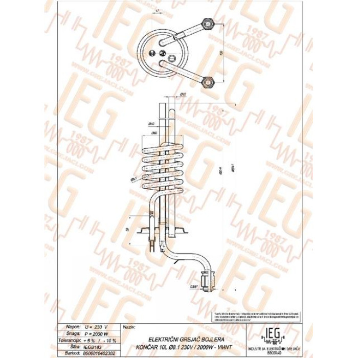 Grijač bojlera KONČAR 10 lit. NM 2,0 kW - nt.