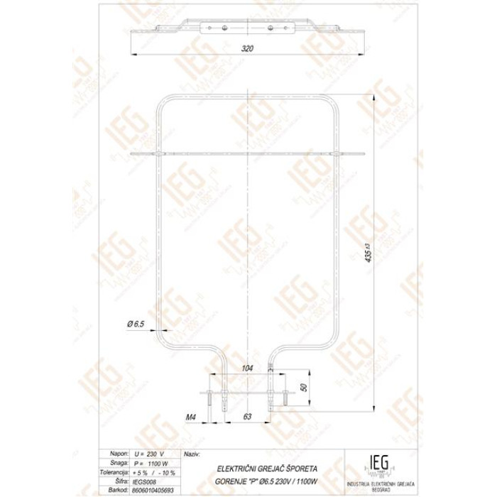 Model: cijevni za Gorenje štednjak - gornji