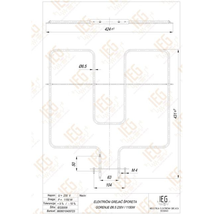Grijač Gorenje 1100 W Benkica - za štednjak