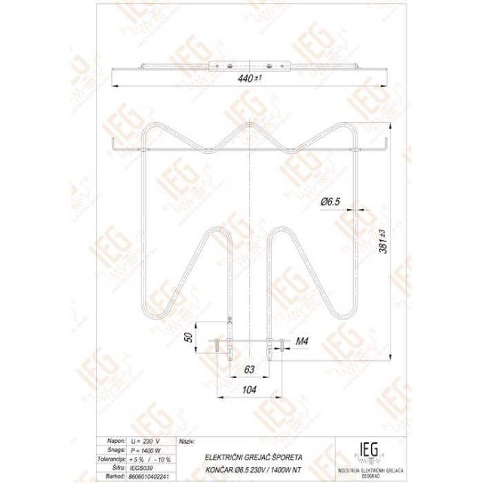 Model: cijevni za Končar štednjak nt. (novi tip) - donji