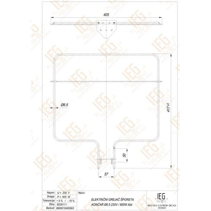 Model: cijevni za Končar štednjak st. (stari tip) - gornji