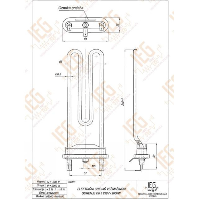 Grijač Gorenje 2000 W st.- za perilicu rublja