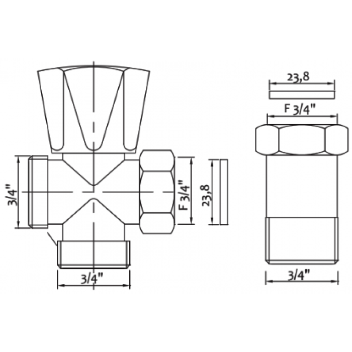 Ventil 3/4" x 3/4" x 3/4" za perilicu "GP"