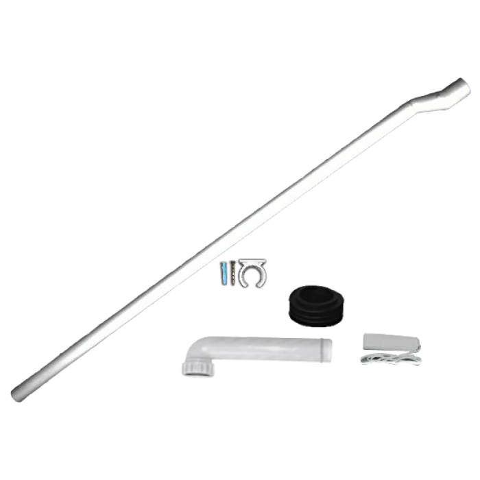 Set se sastoji od: Koljena, gumene manžete, nosača cijevi i potezača sa špagicom za vodokotlić