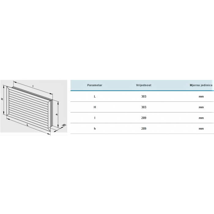 Rešetka ventilacijska 300 x 300 mm - gravitacijska