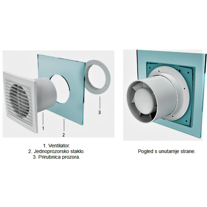 Namjena: za ugradnju ventilatora u staklo ili panel debljine 3-4 mm