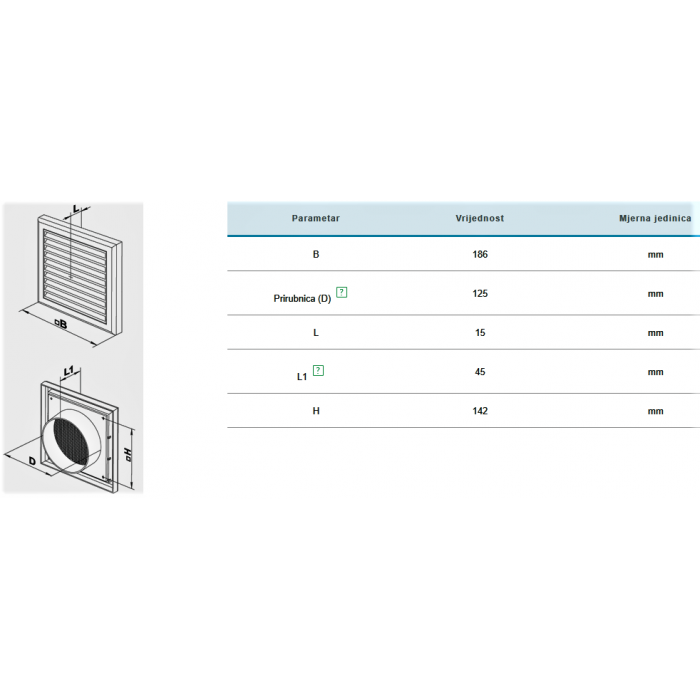 Rešetka ventilacijska ø100 mm - gravitacijska