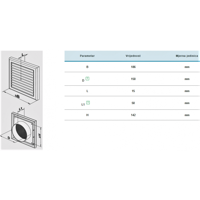 Rešetka ventilacijska ø150 mm - gravitacijska
