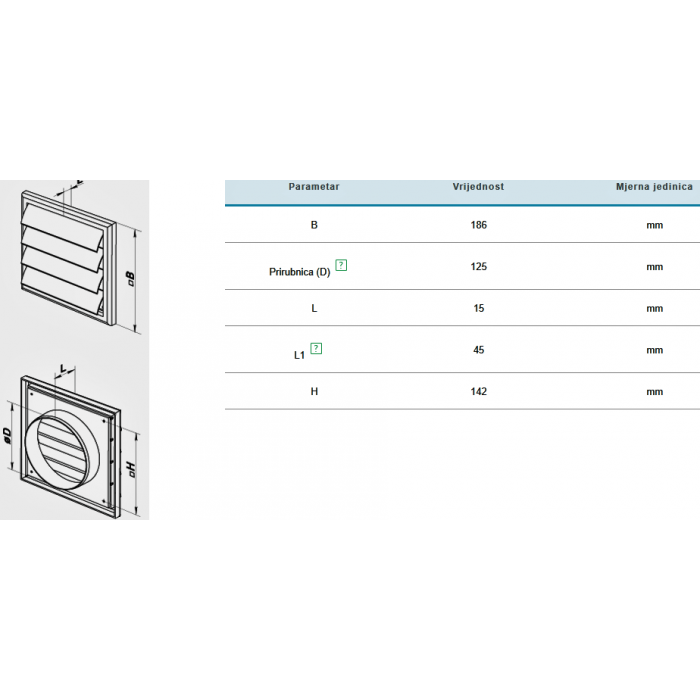Rešetka ventilacijska ø125 mm - gravitacijska