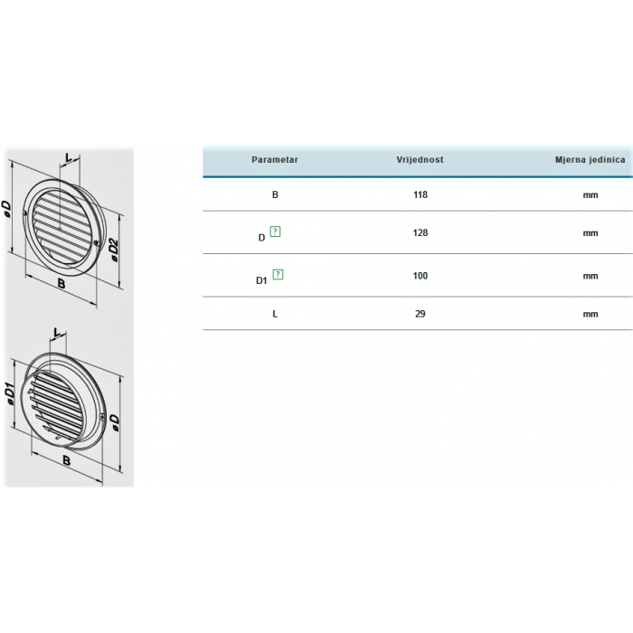 Rešetka ventilacijska ø100 mm - gravitacijska