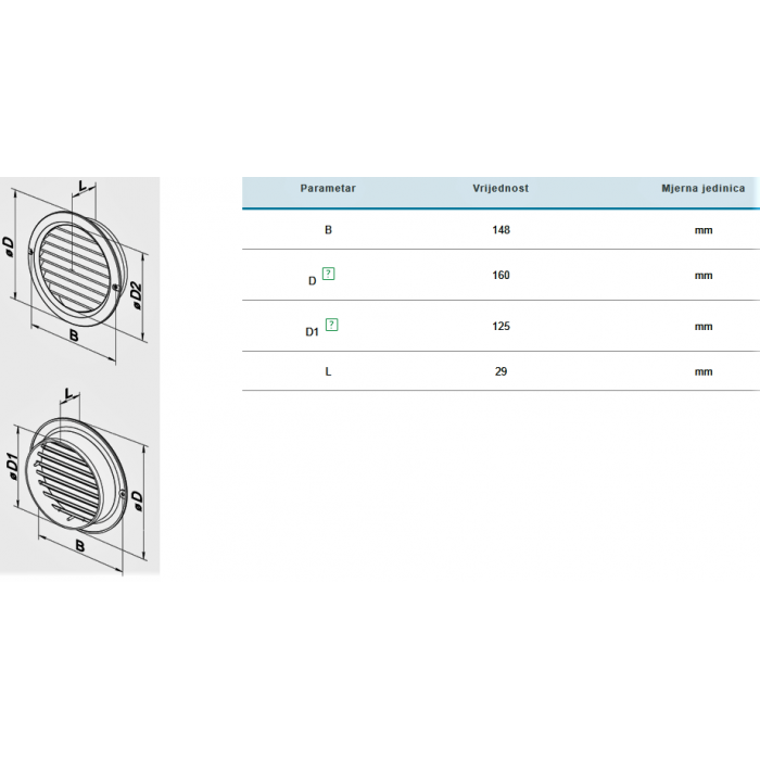 Rešetka ventilacijska - univerzalna - gravitacijska