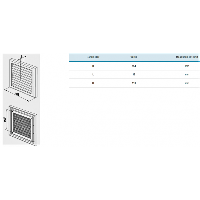 Rešetka ventilacijska 154 mm - sa regulacijom