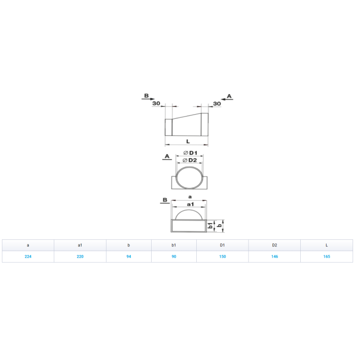 Redukcija ø150 - 90 x 220 mm