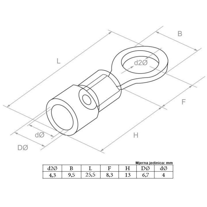 Model. izolirani kabelski završeci sa rupom ø 4 mm RVL 5.5-4