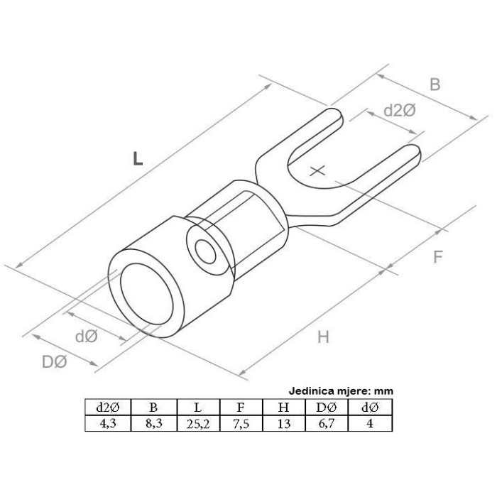 Model: izolirani kabelski završeci sa vilicom ø 4 mm SVS 5.5-4