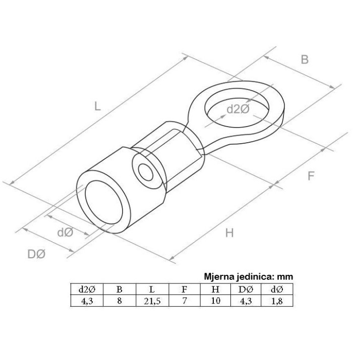 Model: izolirani kabelski završeci sa rupom ø4 mm RVL1.25-4