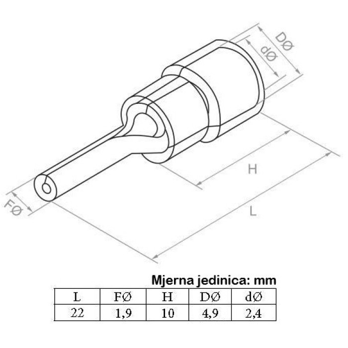 Model: izolirani kabelski završeci sa iglicom 1,9 mm PTV2-12