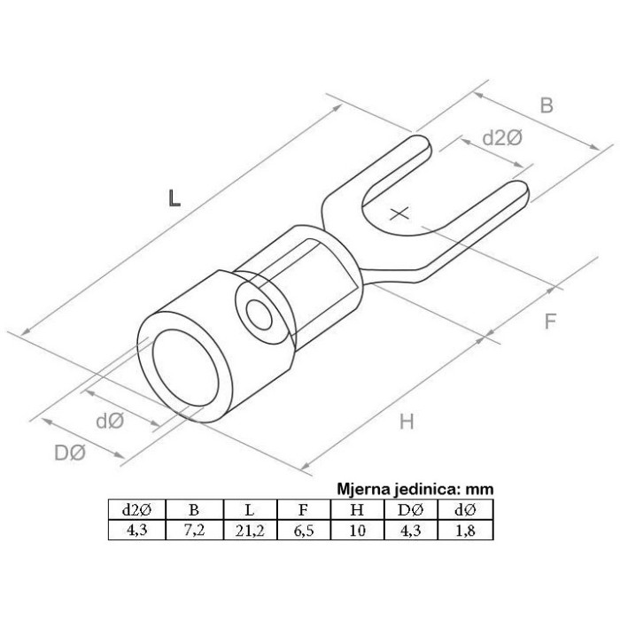 Model: izolirani kabelski završeci sa vilicom ø 4 mm SVM1.25-4