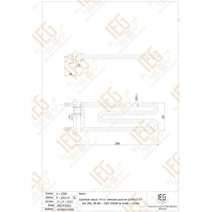 Grijač Gorenje 2000 W st.- za perilicu rublja