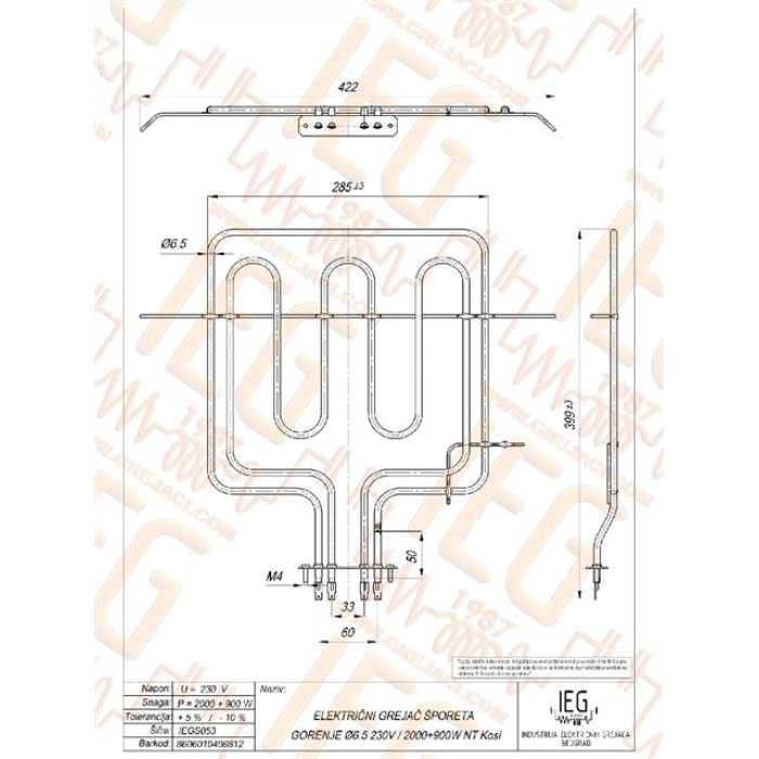 Model: cijevni za Gorenje štednjak - donji, zamjena za perlani model